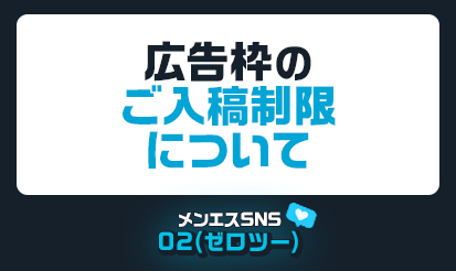 【メンエスSNS02(ゼロツー)】広告枠のご入稿制限について【風俗SNS01(ゼロワン)】、【メンエスSNS02(ゼロツー)】より「広告枠のご入稿制限について」のお知らせです。 概要この度、【風俗SNS01(ゼロワン)】、【メンエスSNS02(ゼロツー)】では、特定の店舗様による枠の独占を防ぎ、より多くの店舗様が公平に露出できる環境を整えるため、以下の通り入稿制限のルールを設けます。【掲載枠】エリアバナー枠(営業・求人)インフィード広告枠(営業・...