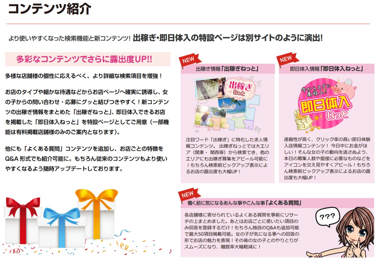 6月10日(土)に大幅リニューアルを行い、体入ねっとは生まれ変わりました♪新コンテンツが実装され情報満載となり女性からの応募も更に期待できます。