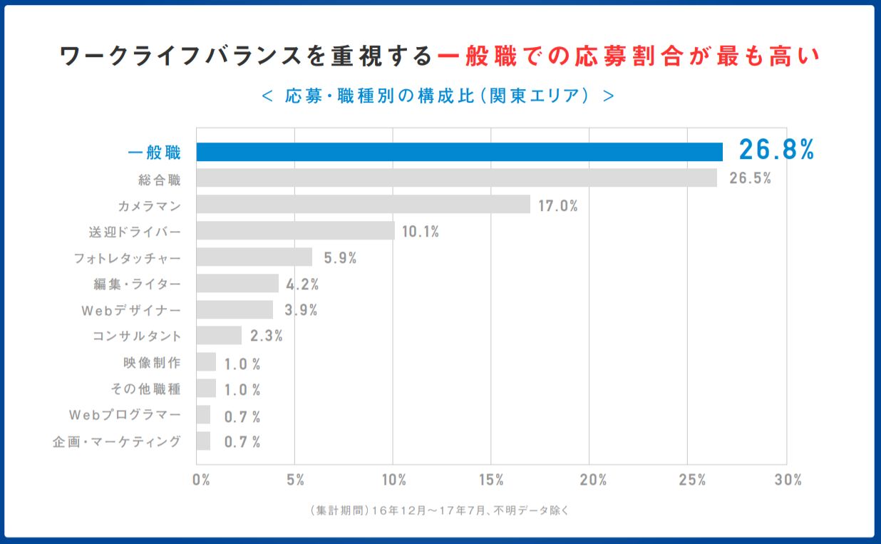 ワークライフバランスを重視する一般職での応募割合が最も高いです!