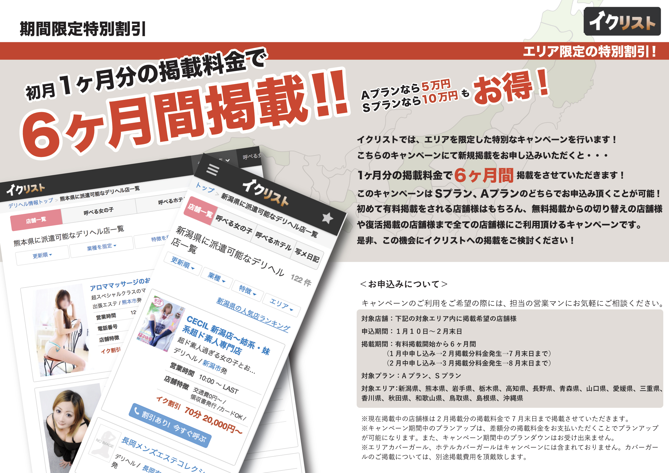 【イクリスト】エリア限定!6ヶ月掲載キャンペーン開催!