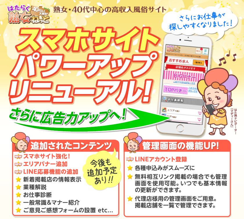 【はたらく熟女ねっと】スマホリニューアルオープン&新オプション誕生...