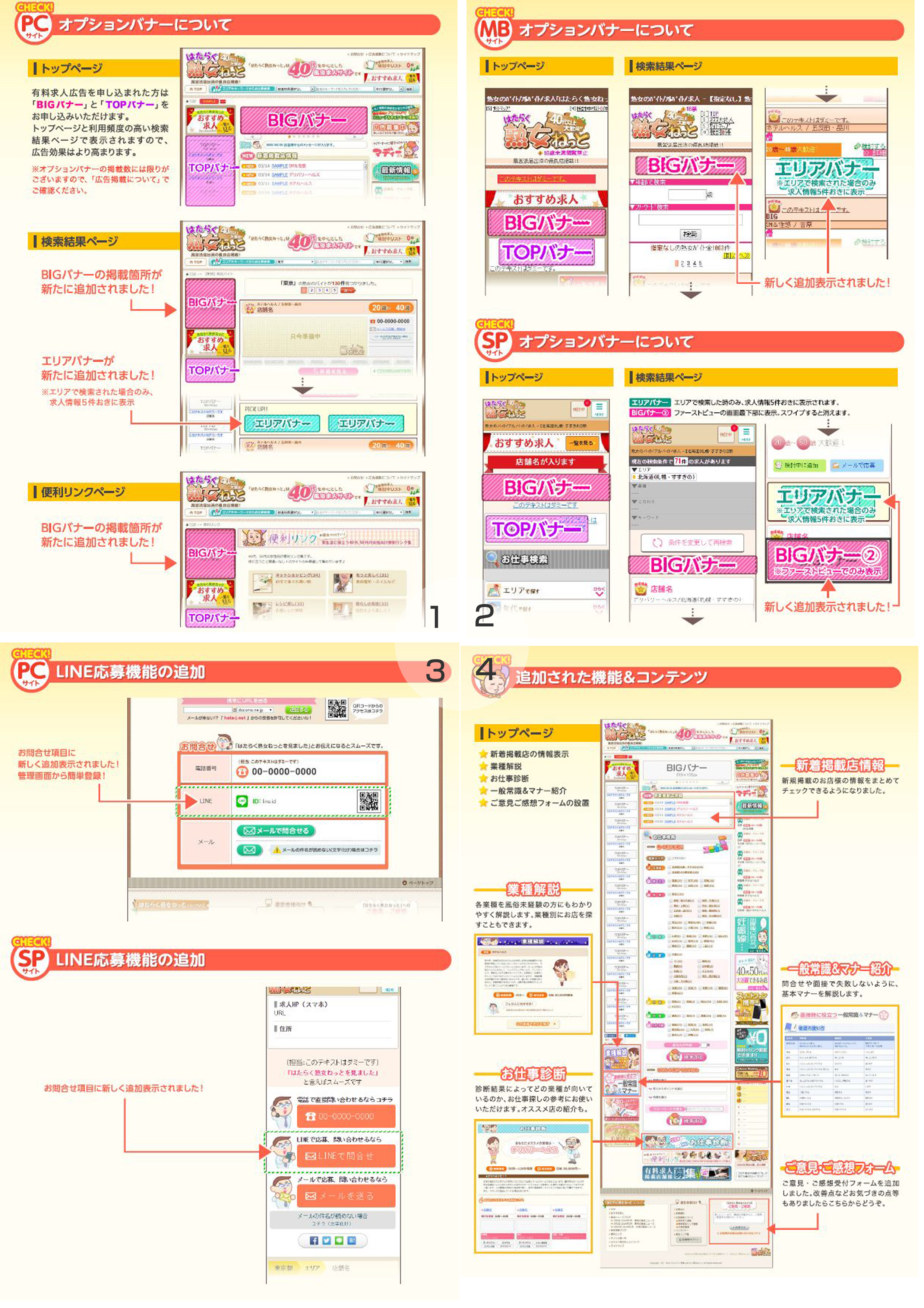 スマートフォンサイトリニューアルに伴い、エリア検索結果ページにランダムで表示される、エリアバナープランを設立いたします!月額10,800円とリーズナブルなオプションとなりますのでこの機会に是非お申込みください。