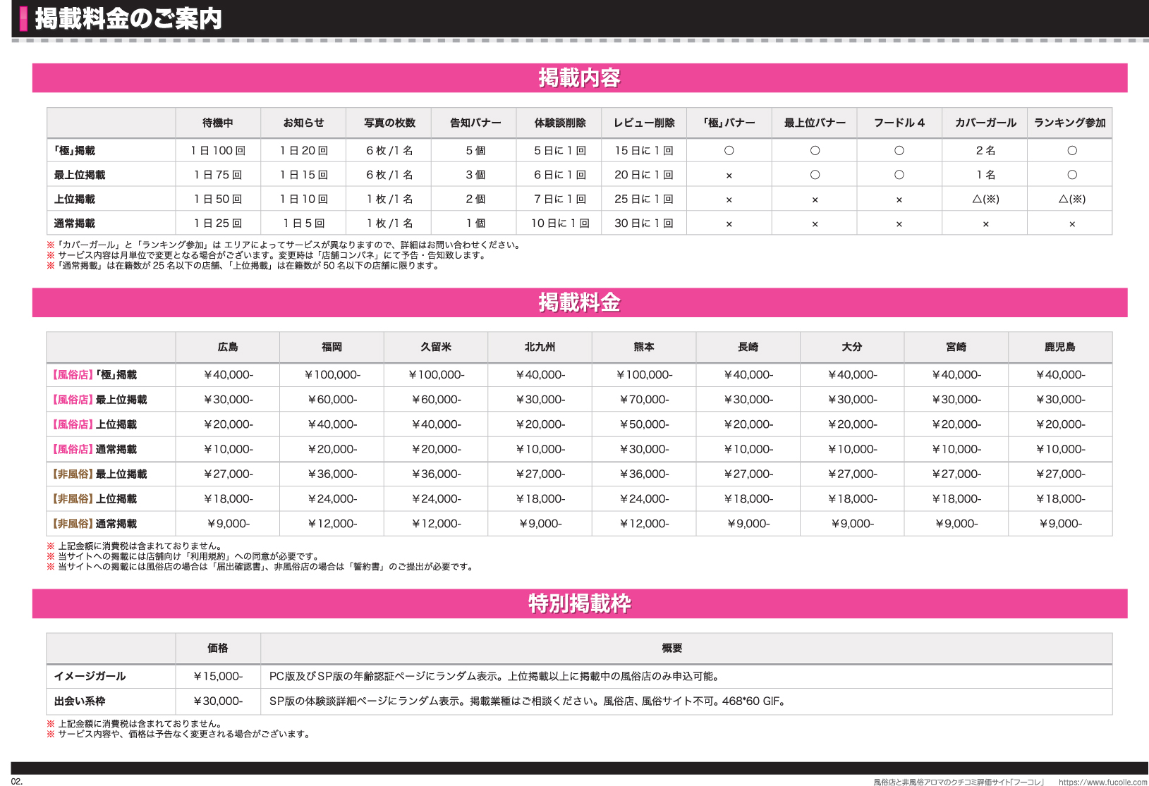 - 掲載可能業種:ソープランド、トクヨク、デリヘル、出張アロマ、非風俗アロマ