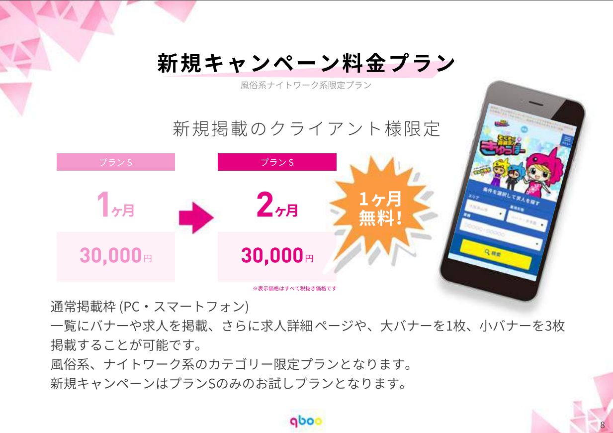 風俗系・ナイトワーク系の店舗様は、通常1ヶ月30,000円の通常掲載が、初回2ヶ月30,000円となっております!