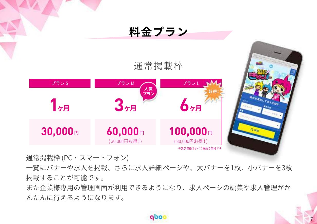 | 通常掲載 | プランS | 30,000円/月 | - |