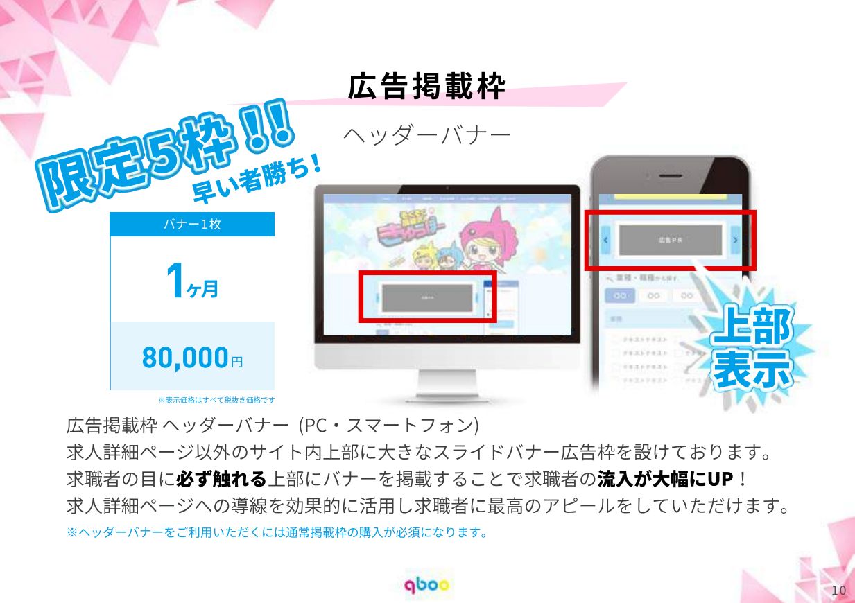 | オプションプラン | ヘッダーバナー | 80,000円/月 | 5枠限定 |