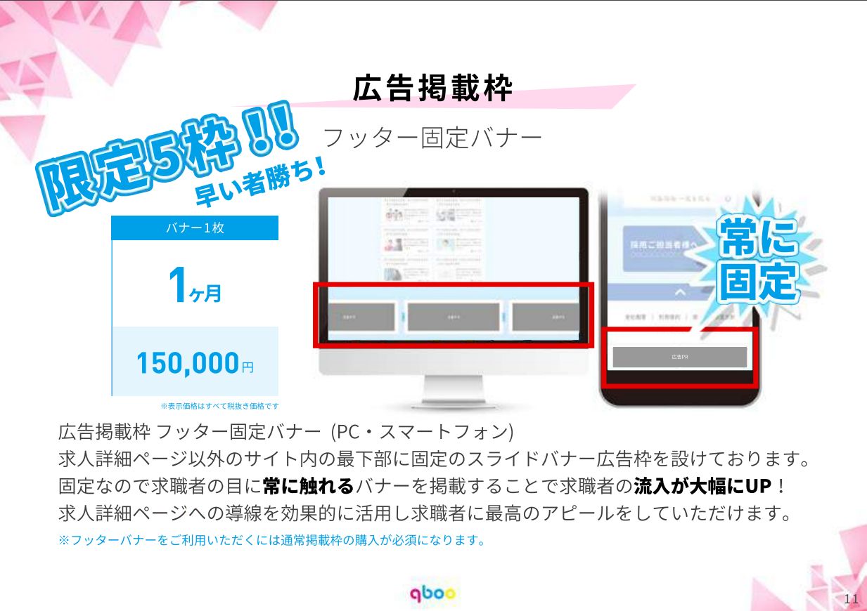 | フッター固定バナー | 150,000円/月 | 5枠限定 | |