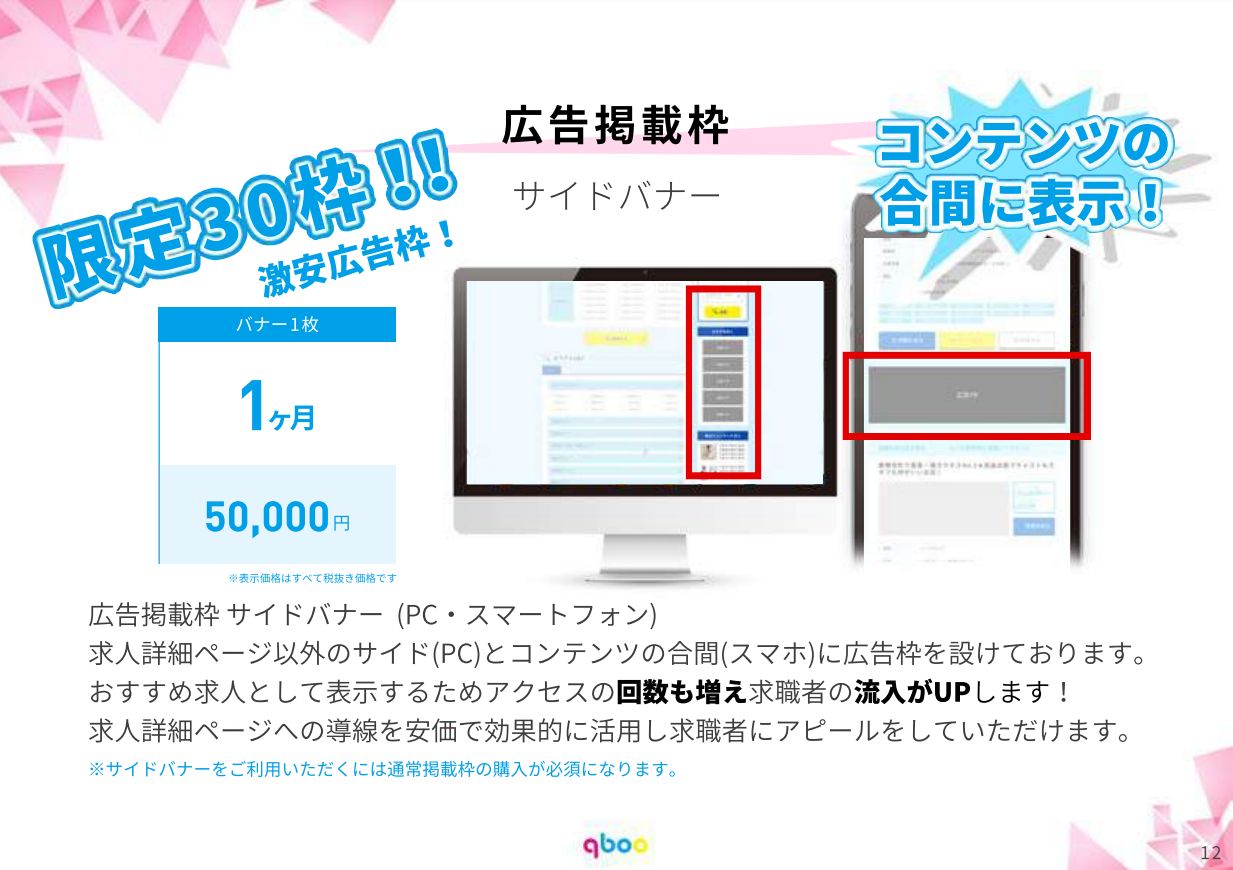 | サイドバナー | 50,000円/月 | 30枠限定 |