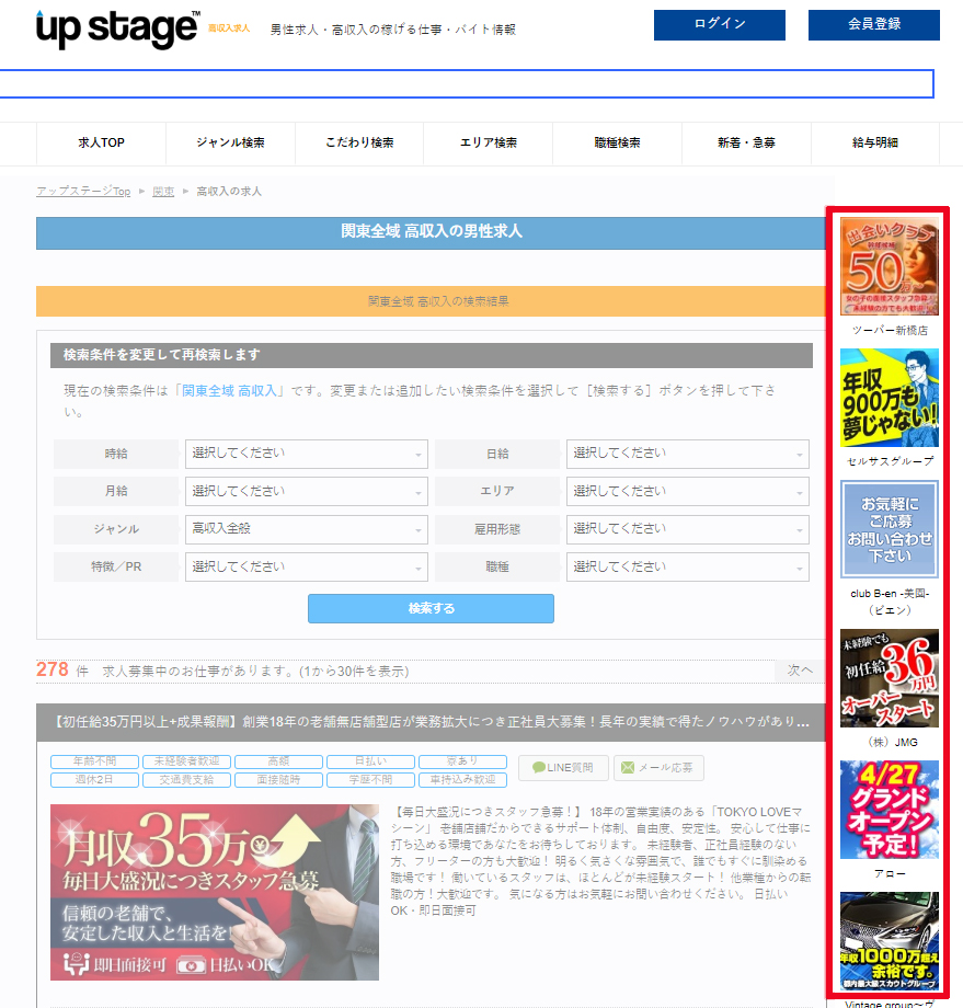 男性求人サイトと言えば、アップステージより、検索結果の右カラムスクエアバナー廃止のお知らせです。
