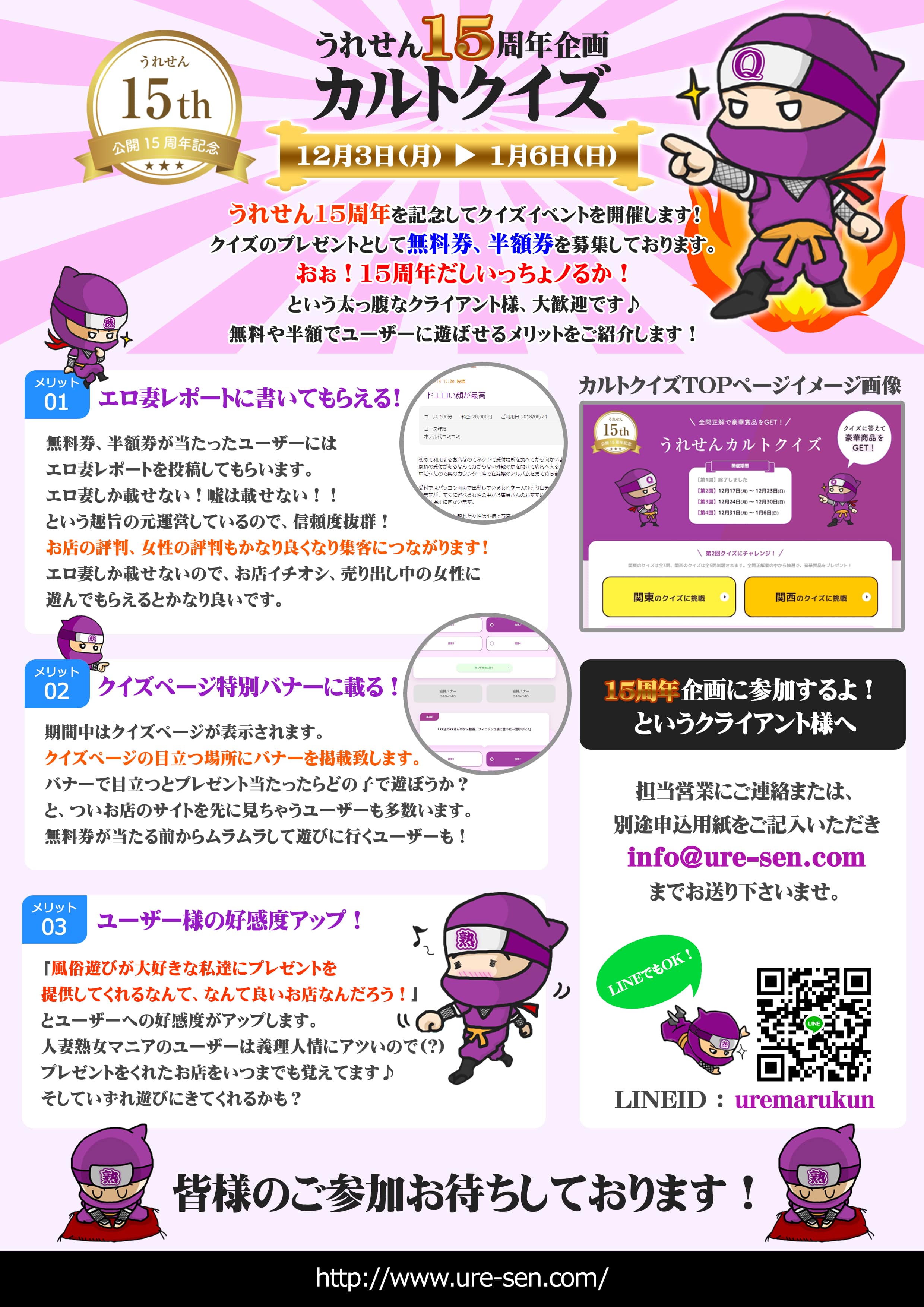 そんなうれせんより、15周年&年末年始プレゼント企画「うれせんカルトクイズ」の参加店舗様募集のお知らせです!