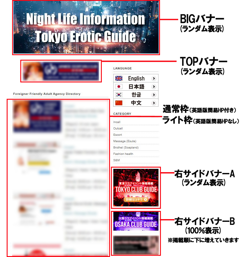 「大阪・名古屋・福岡・札幌・沖縄」の5エリア限定で、初回1ヶ月のご掲載料金にて3ヶ月間のご掲載が可能となります! 更に、外国人の対応可能な女の子が見ているErotic Guideの求人版サイトTEGリクルートの通常枠がサービスとなっております。
