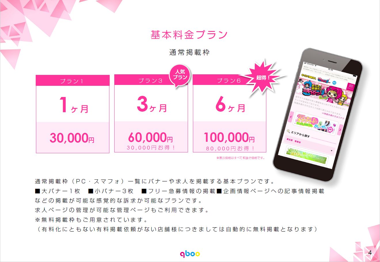 通常1ヶ月30,000円のところ、新規掲載キャンペーンとして初回2ヶ月30,000円にて、掲載可能となっております♪