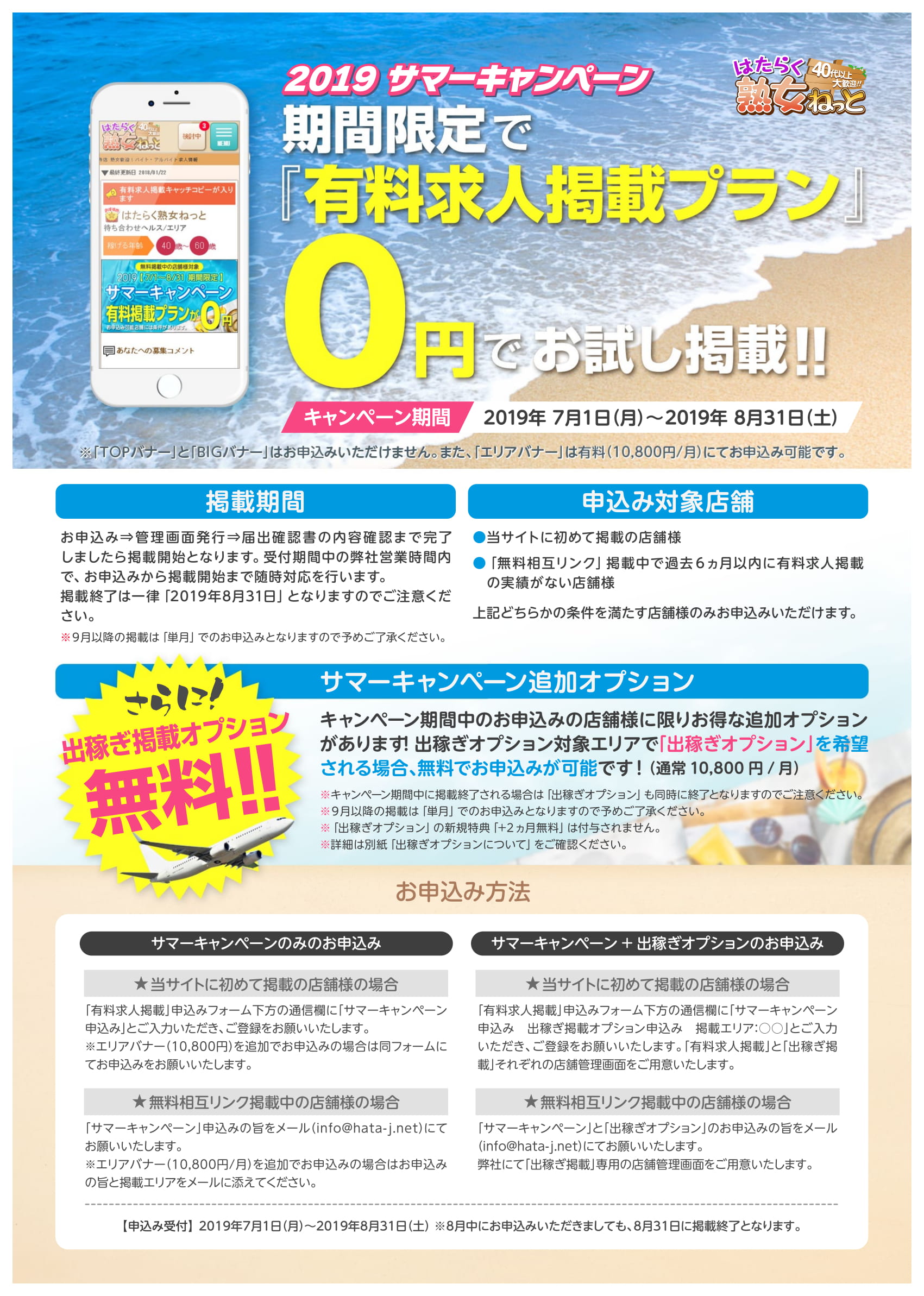 主婦や人妻さん、40代を中心とした風俗求人専用の検索サイト!年齢を気にせず働ける!稼げる!不況知らずの業界で、安定高収入が可能な為、応募がグングン伸びている はたらく熟女ねっとより、毎年恒例のサマーキャンペーンのお知らせです!