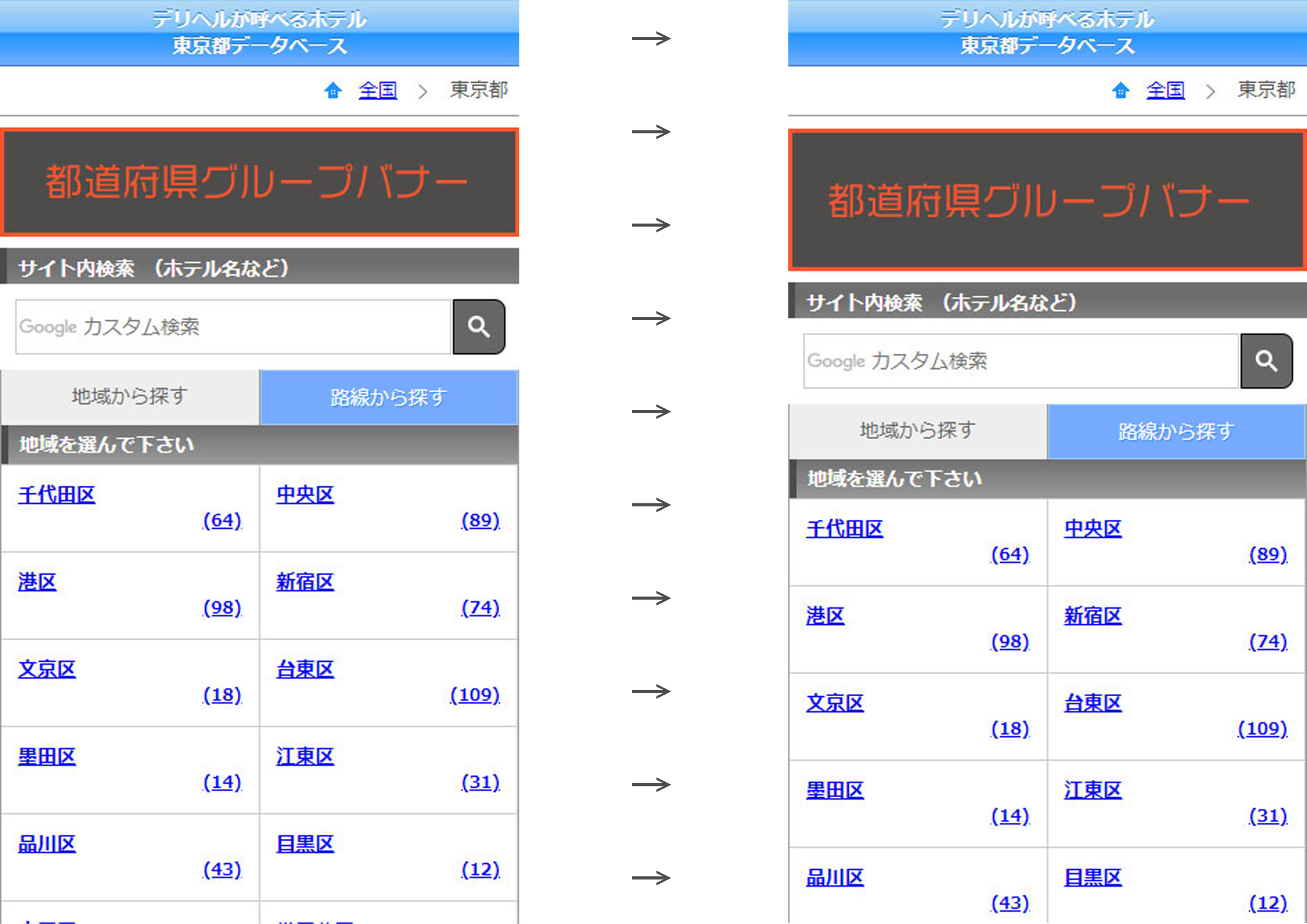 【デリヘルが呼べるホテル】スマホ版「都道府県バナー」のサイズ変更の...