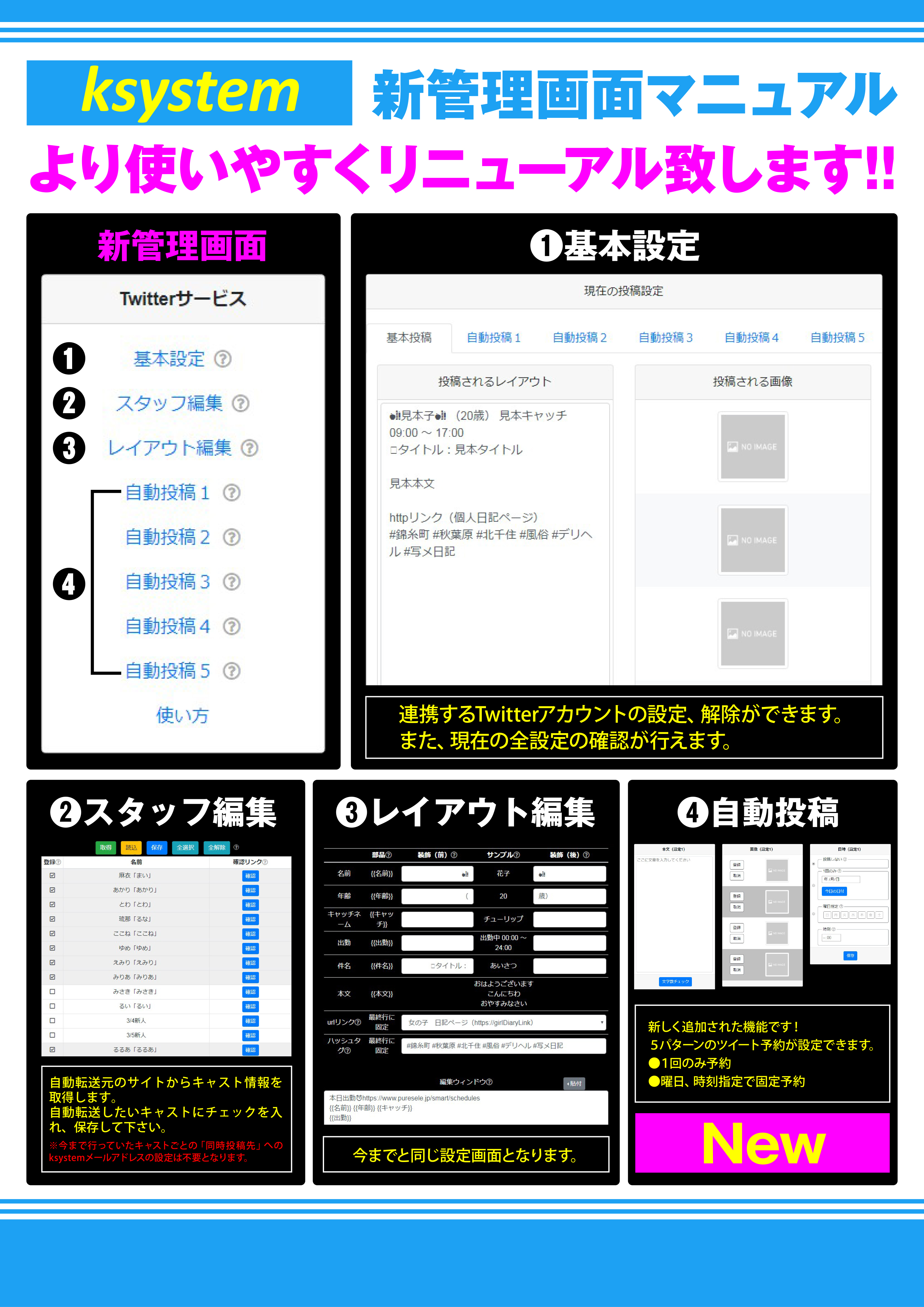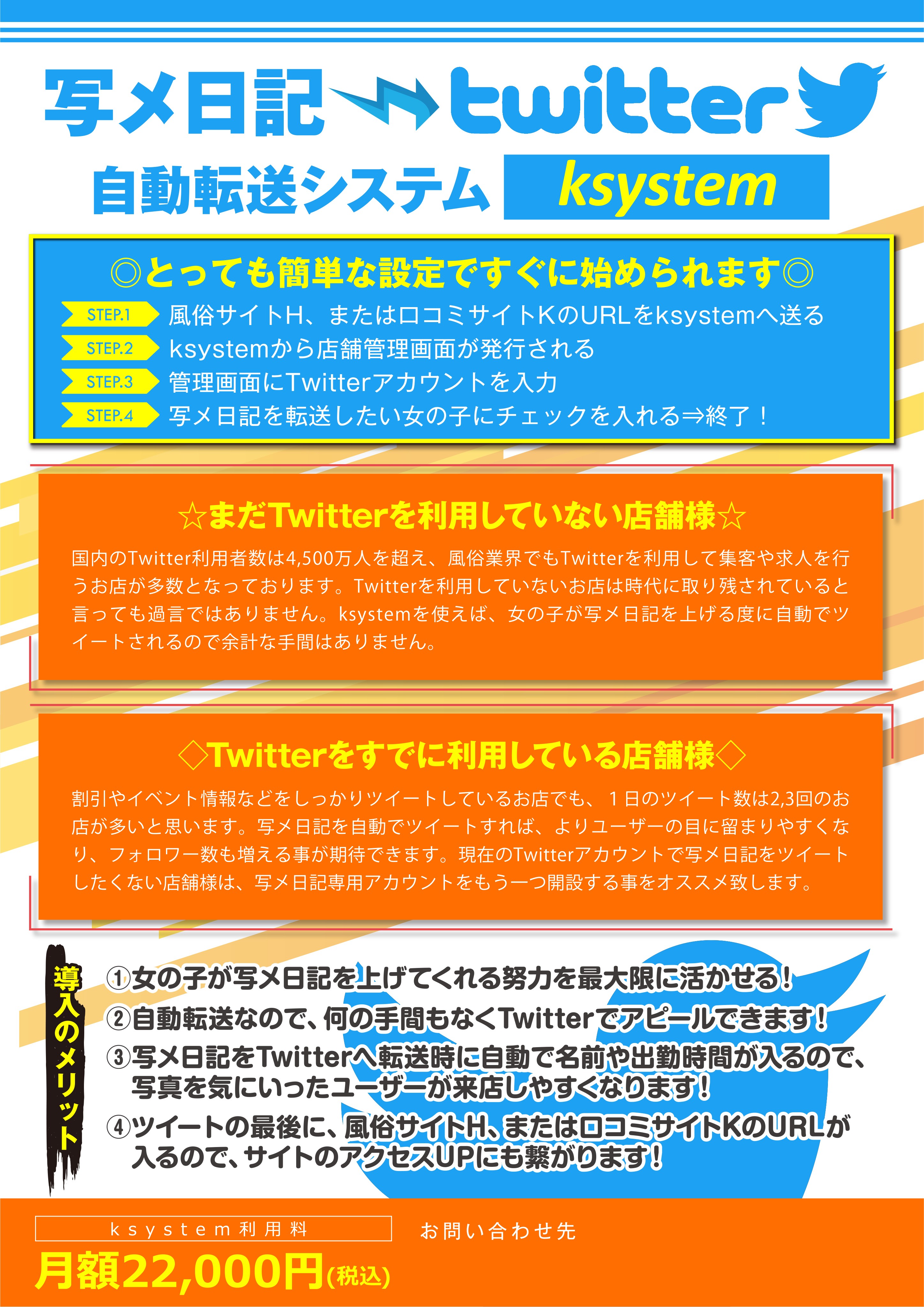有名な風俗ポータルサイトに投稿した在籍女性の写メ日記をtwitterにも投稿できるksystemがリニューアルすることとなりました!