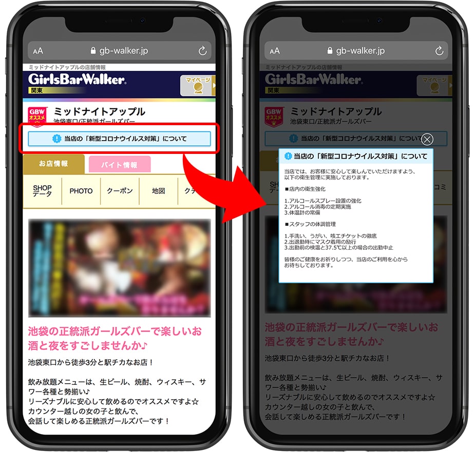 【ガールズバーウォーカー】新型コロナウイルス感染症に伴う、予防対策...