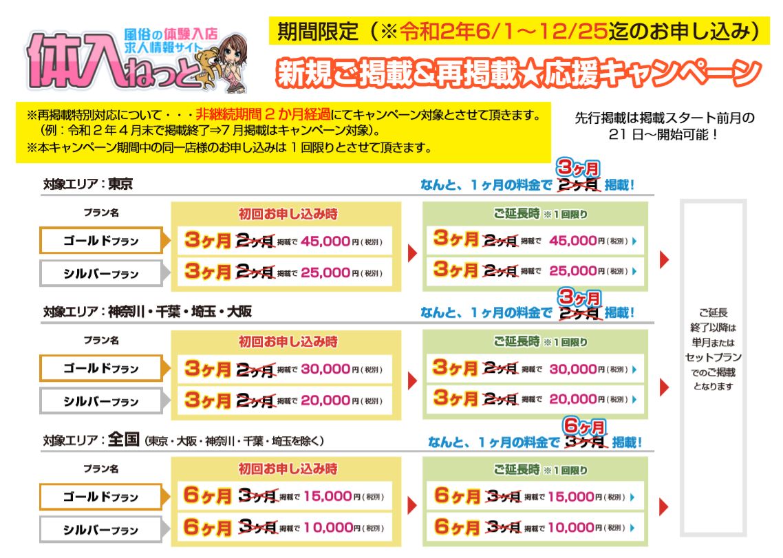 【体入ねっと】コロナに負けるな!期間限定!複数月掲載キャンペーンの...