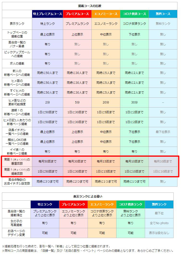 全国の風俗、デリヘルの口コミ掲載数NO.1の口コミ風俗情報局より、「局割」の仕様変更のお知らせです!!