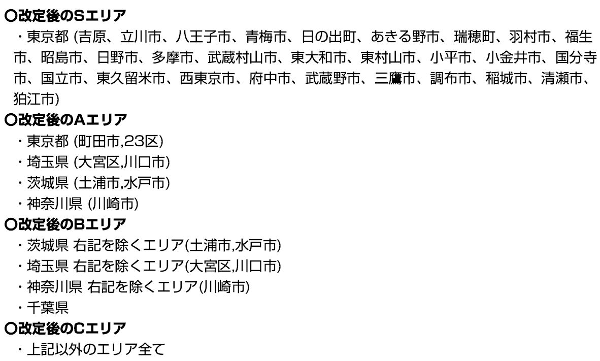 | 改定エリア | 変更前 | 変更後 |