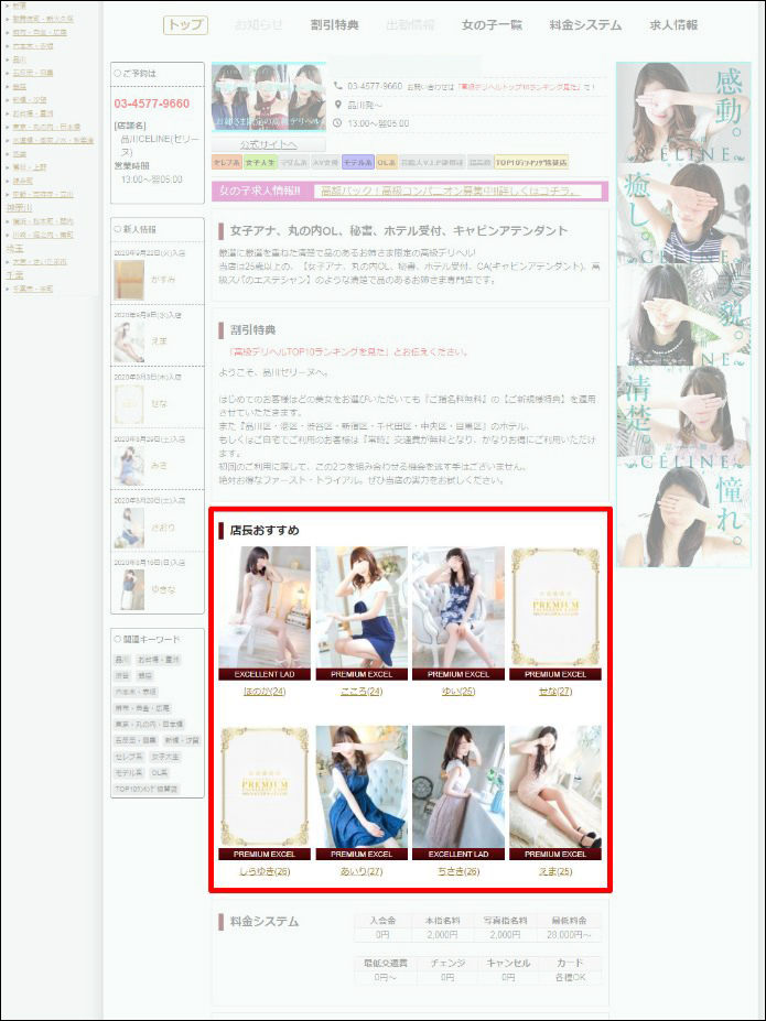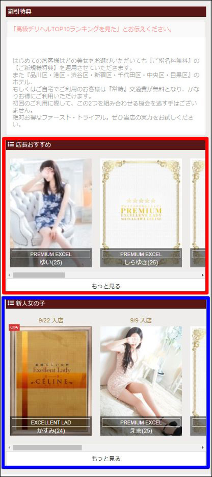 - パソコン版、スマホ版両方に表示がされる新機能になります!掲載位置は店舗詳細ページのトップページの出勤情報の下に表示されます!設定は管理画面にて「店長おすすめ」にチェックを入れていただく事で、表示または非表示することが出来ます。 また、店長おすすめに女性選択に上限はありませんが、表示されるのはランダムで”8名”までになります。