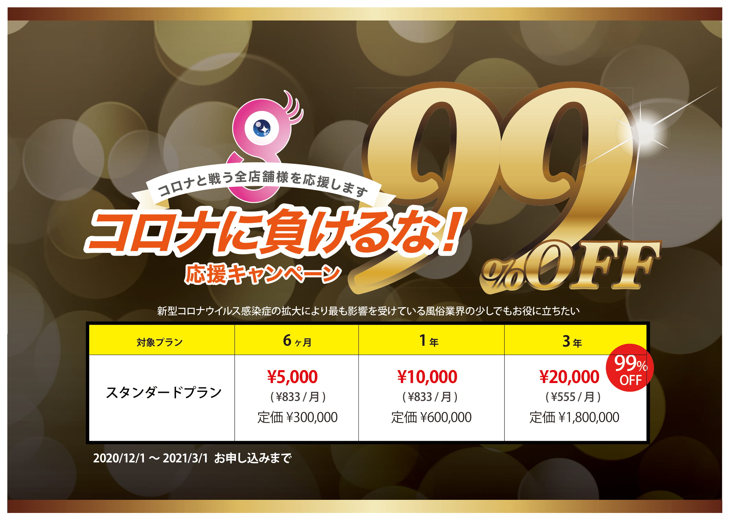 新型コロナウィルスが蔓延し、感染者が増加傾向にある今だからこそ、店舗様にはよりお得に掲載できるよう「コロナに負けるな応援キャンペーン」が実施されます。