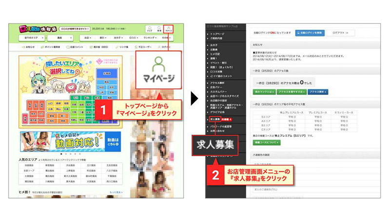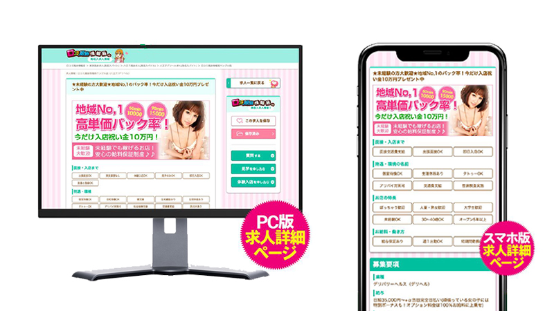 - ・求人募集は「女の子求人」「内勤スタッフ求人」それぞれのご掲載が可能となります。