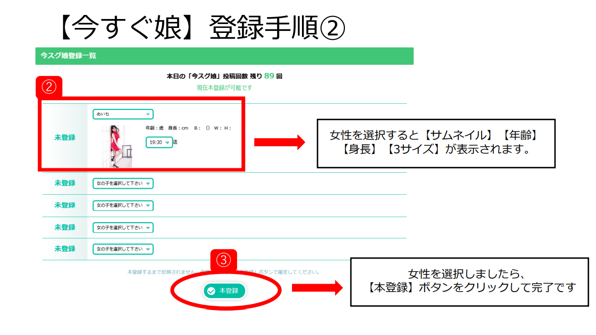 6月16日(水)より、「今すぐ娘」の登録方法を簡素化させる仕様がございました。なお、表示面に関する「登録回数」「表示場所」 の仕様変更はございません。