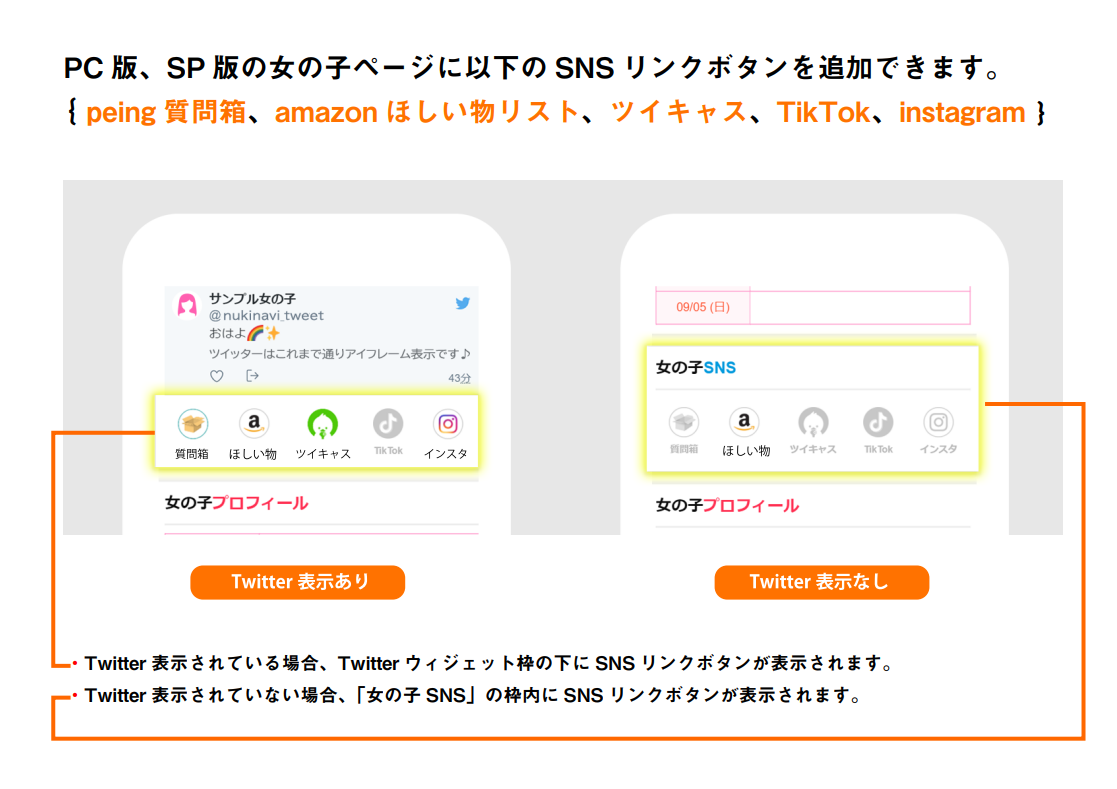 新機能リリース!女の子ページに以下の「SNSリンク」を追加できるようになりましたのでお知らせいたします。