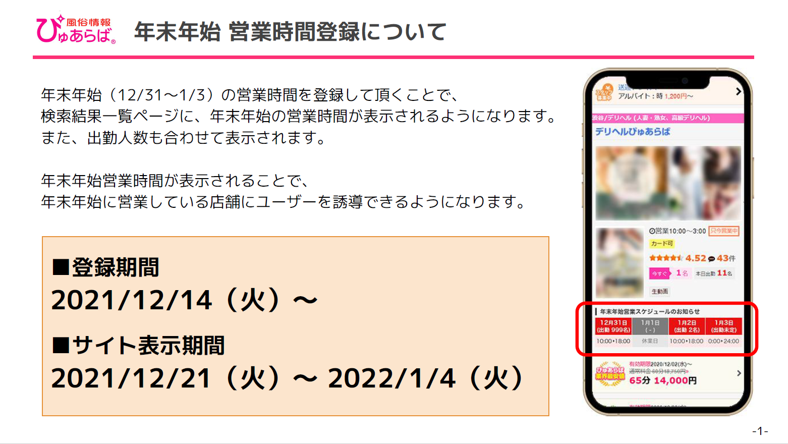 【ぴゅあらば】年末年始営業時間登録についてのお知らせ