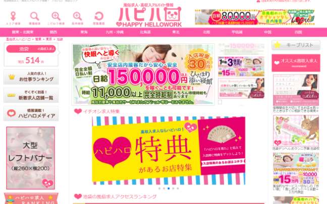 「体入特集」「大人女子特集」「人気お仕事ランキング」「お仕事別求人ランキング」など、女の子の目を引くコンテンツが、すべて無料!!都内はもちろん、地方でも「エリア 風俗 求人」「エリア 風俗 高収入」等のワードでSEO上位を維持している、「ハッピーハローワーク」より 新バナープラン導入のお知らせです!!