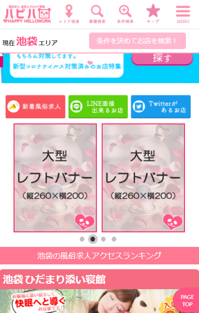 - 現在フルパックプランを掲載中の店舗様は、追加料金なしで大型レフトバナーが追加されます。