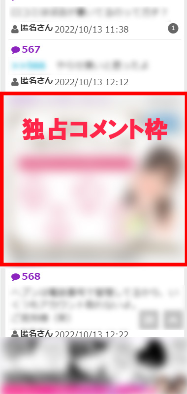 - サービス内容:独占コメント枠の開始初月に板枠を1ヶ月間サービス掲載