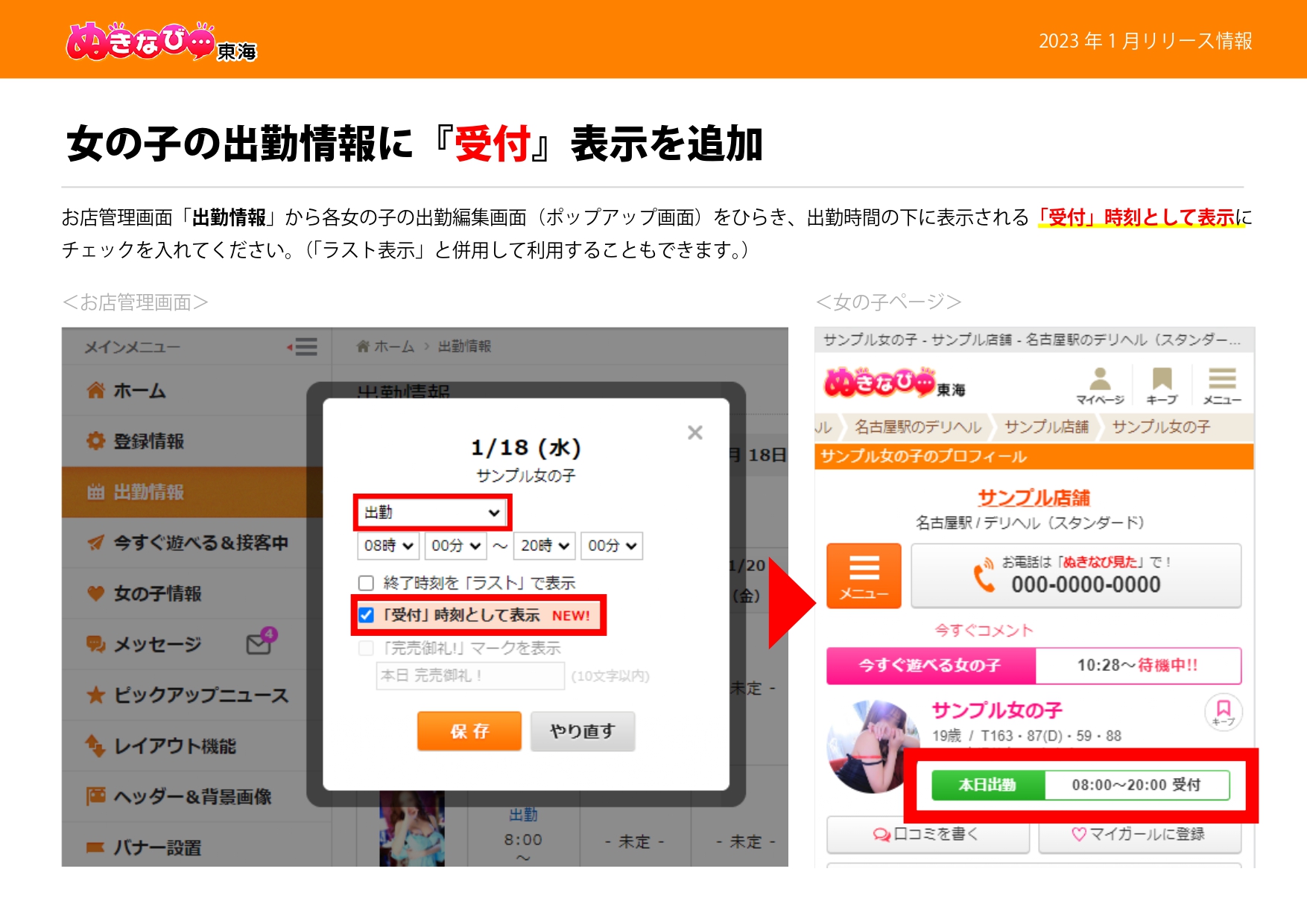 【ぬきなび東海】出勤情報の『受付』表示についてのお知らせ!