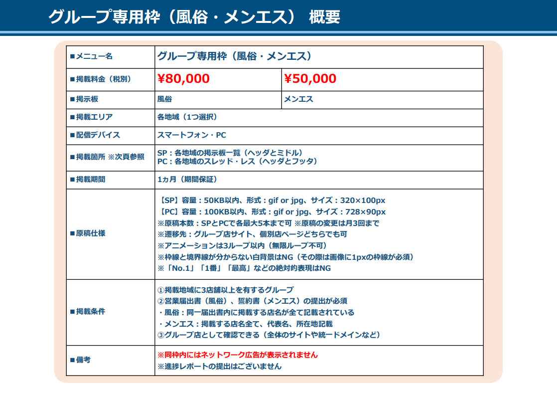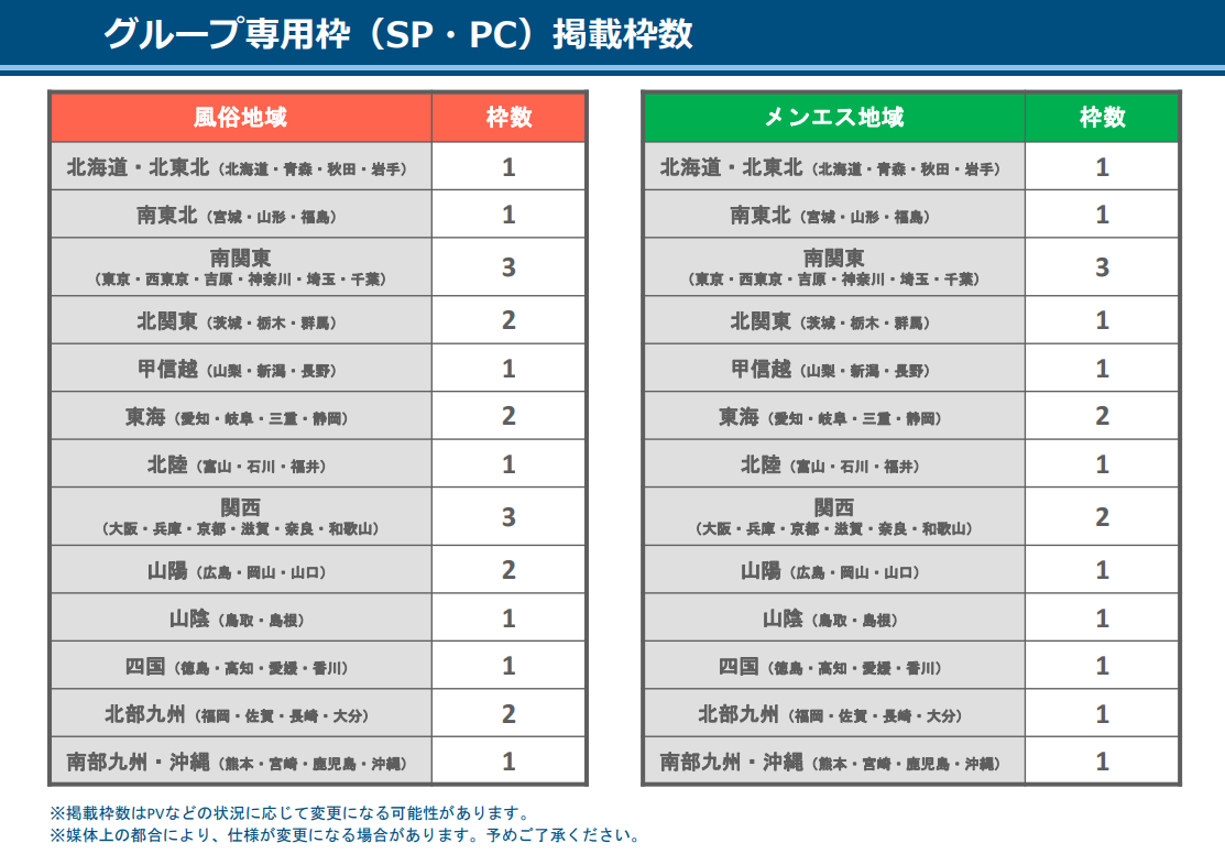 2023年3月より、風俗店舗様、メンエス店舗様にて、グループ単位で申込みが可能な、『グループ専用枠』をリリースいたします!