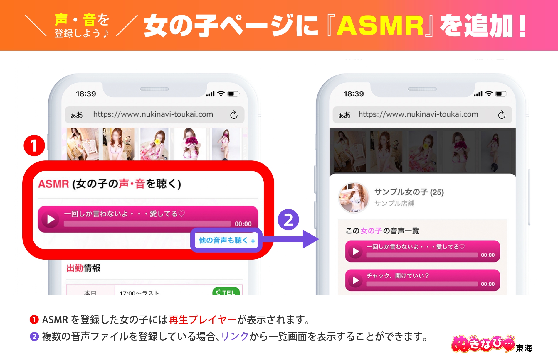 ②女の子ページに『ASMR』を表示