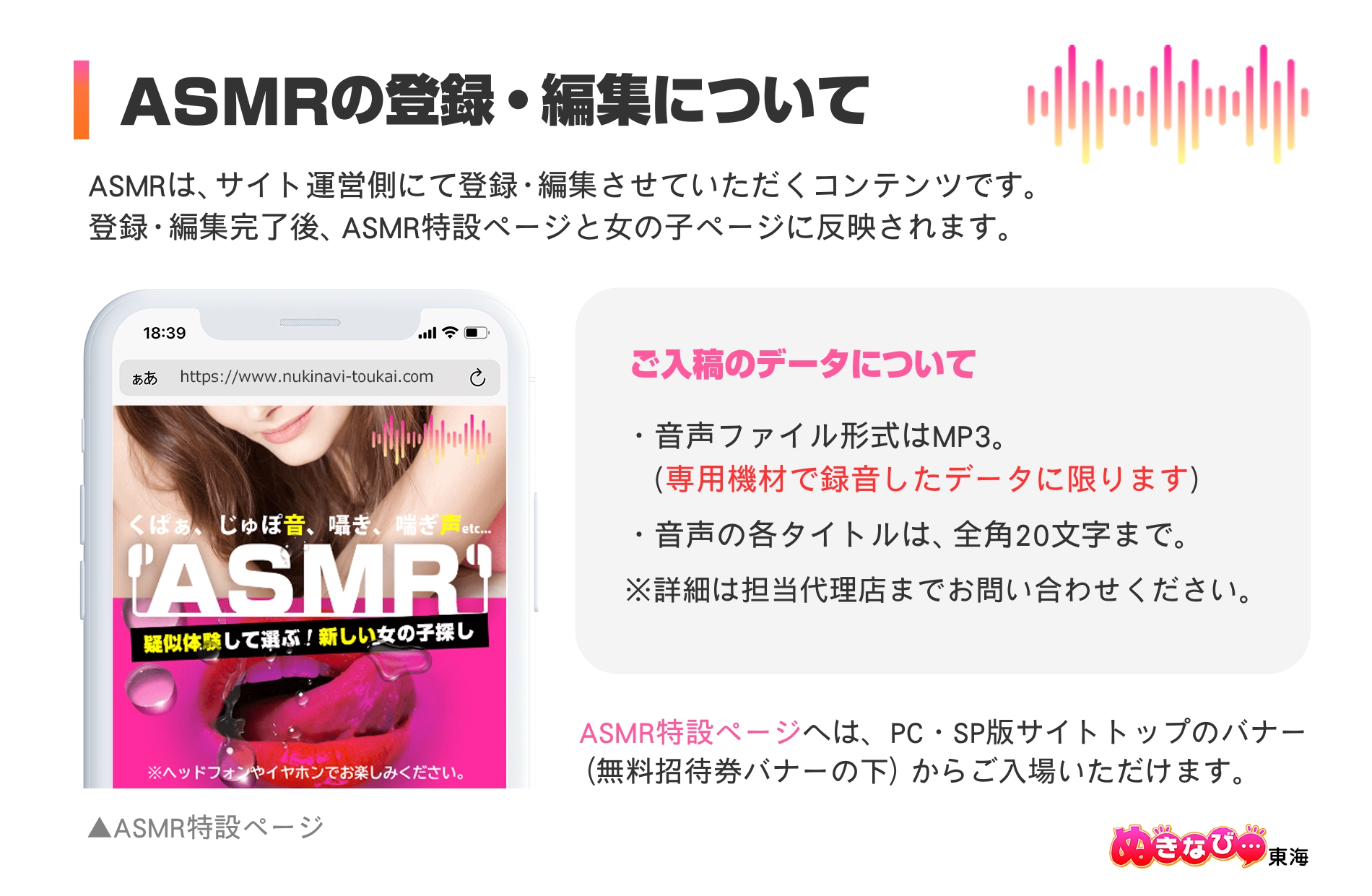 ASMR特設ページへの登録・編集と連動されます。(以前から登録された情報も含む)