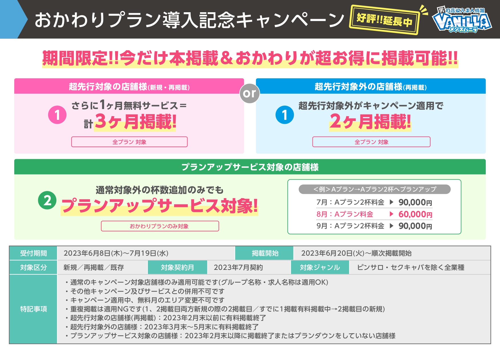 【メンズバニラ】7月度おかわりプラン導入記念キャンペーン延長のお知ら...