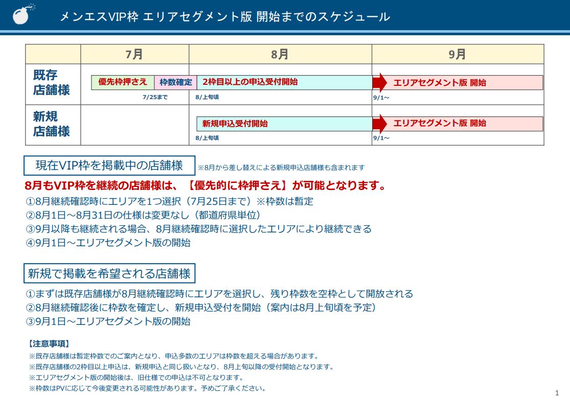 2023年9月【東京・愛知・大阪】エリアのメンエスVIP枠仕様変更について