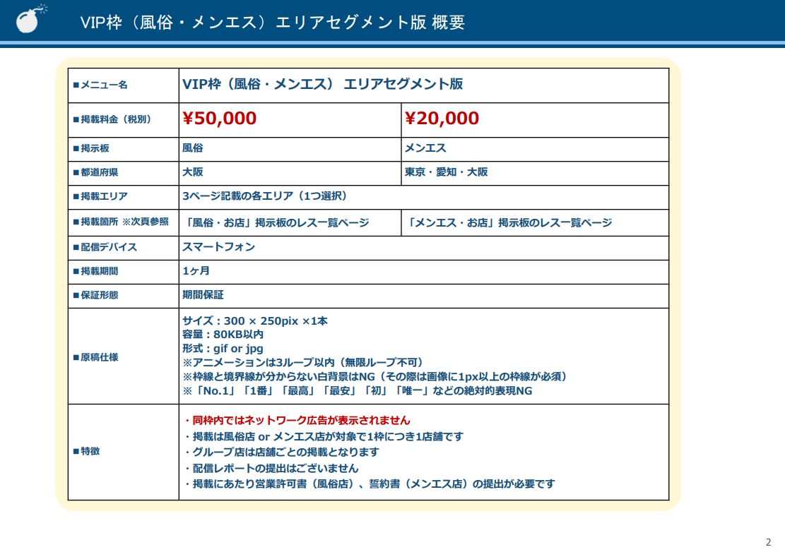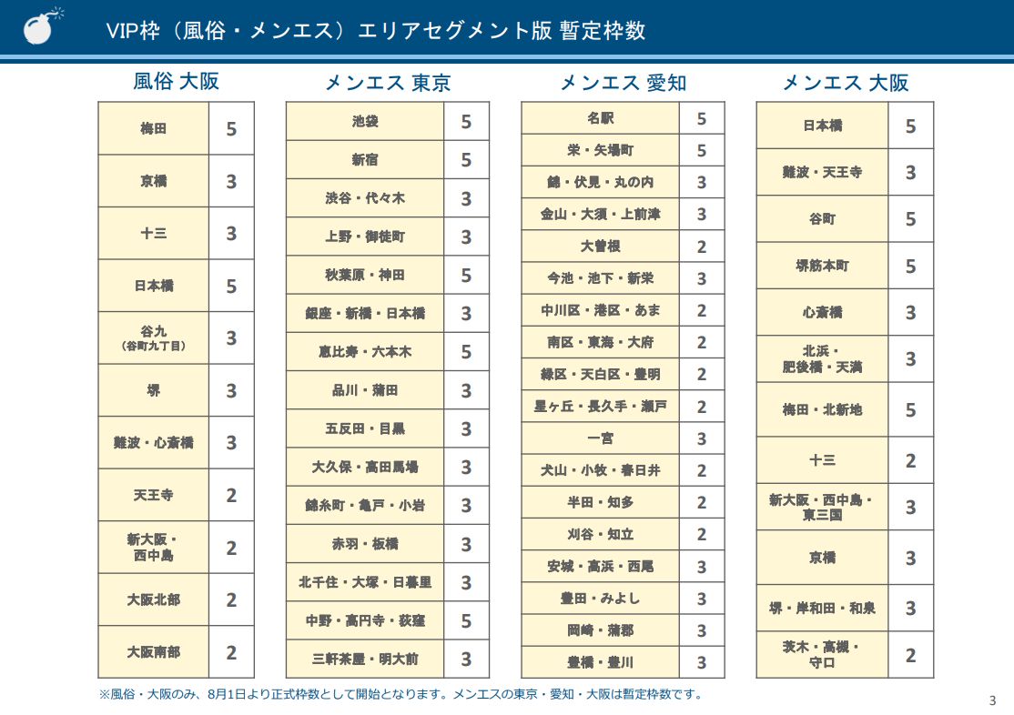 風俗VIP枠「大阪エリア」セグメント版の枠数見直しについて