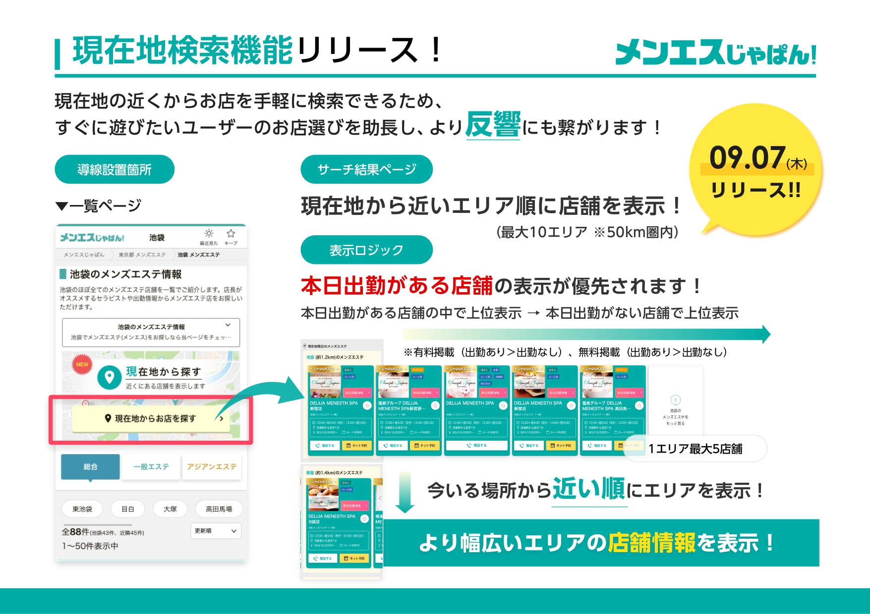【メンエスじゃぱん】現在地検索機能リリースのお知らせ