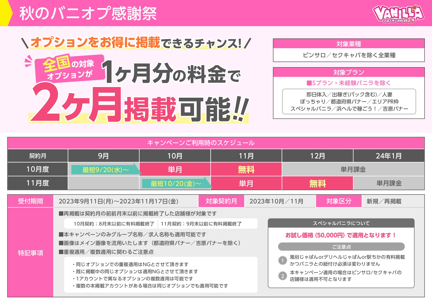 【バニラ】秋のバニオプ感謝祭のお知らせ