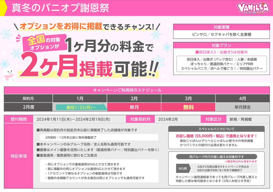 【バニラ】真冬のバニオプ謝恩祭 開催のお知らせ