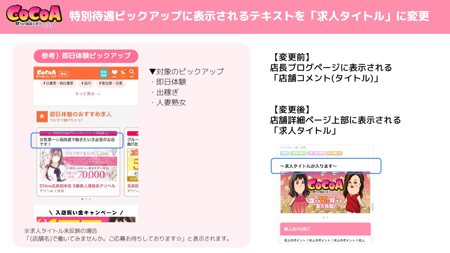 風俗求人 ココアより、一部仕様変更のお知らせです。