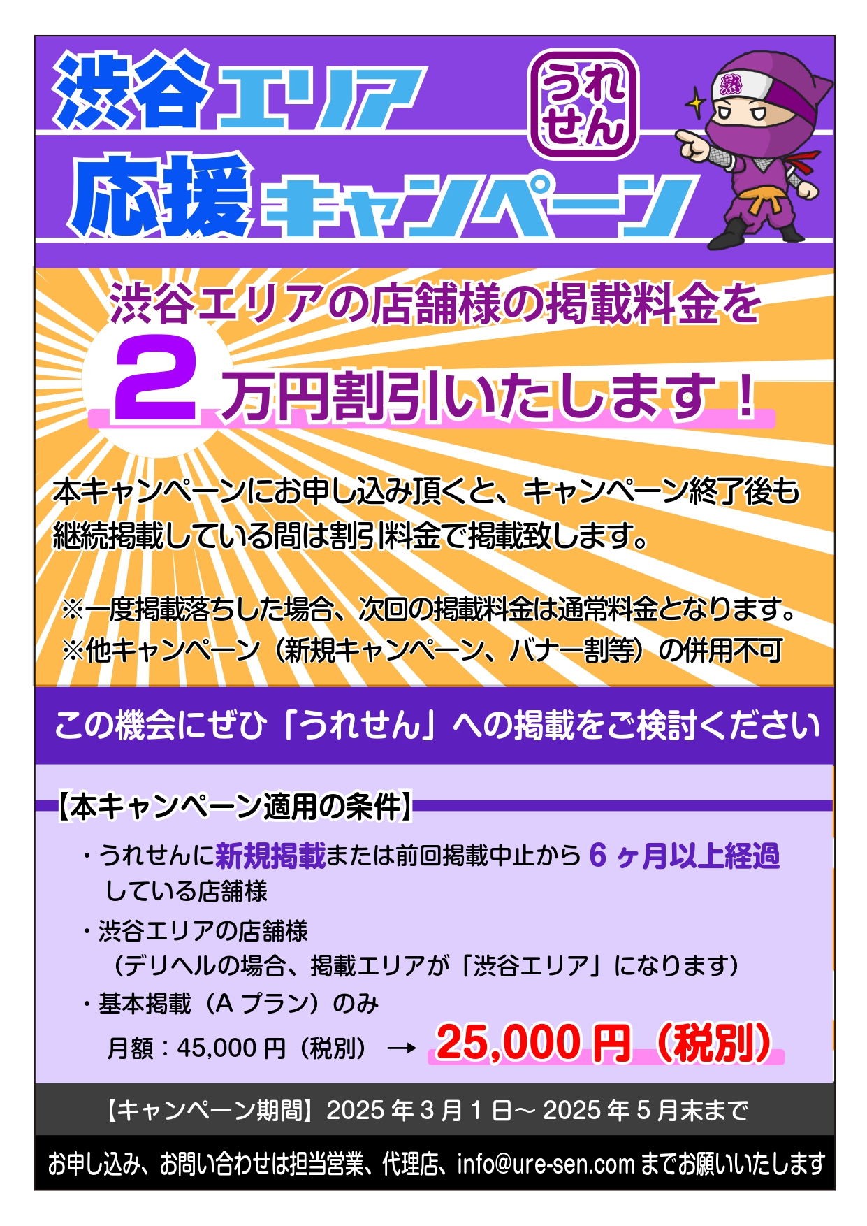 渋谷エリアの店舗様の掲載料金を2万円割引のキャンペーン!