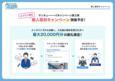 メンズバニラではサンキューーー!!キャンペーン第2弾【新人取材キャンペーン】の開催が予定されております。