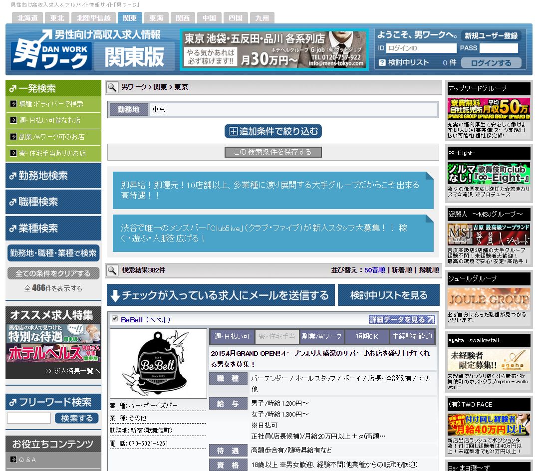 【男ワーク関東版】 新エリア追加のお知らせ