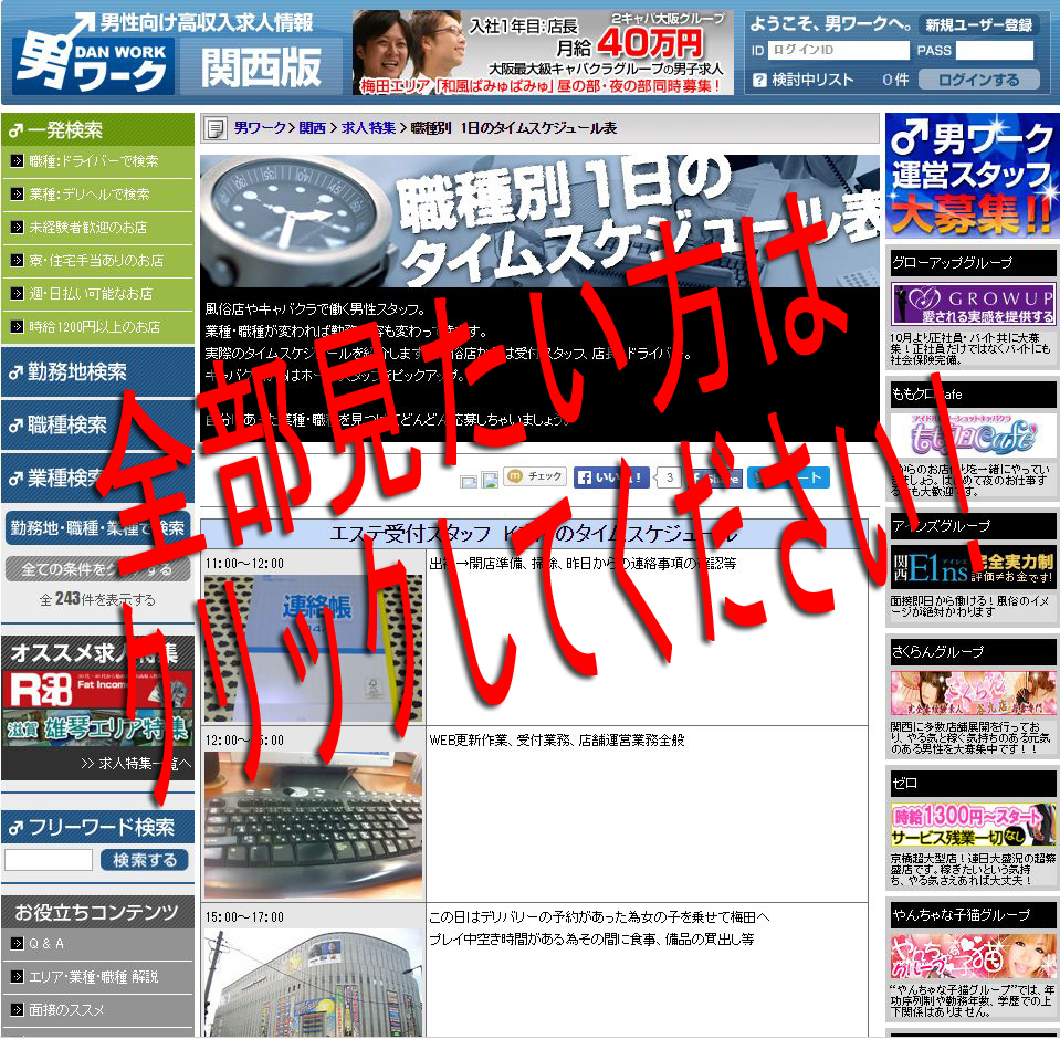 職種別: 1日のタイムスケジュール表