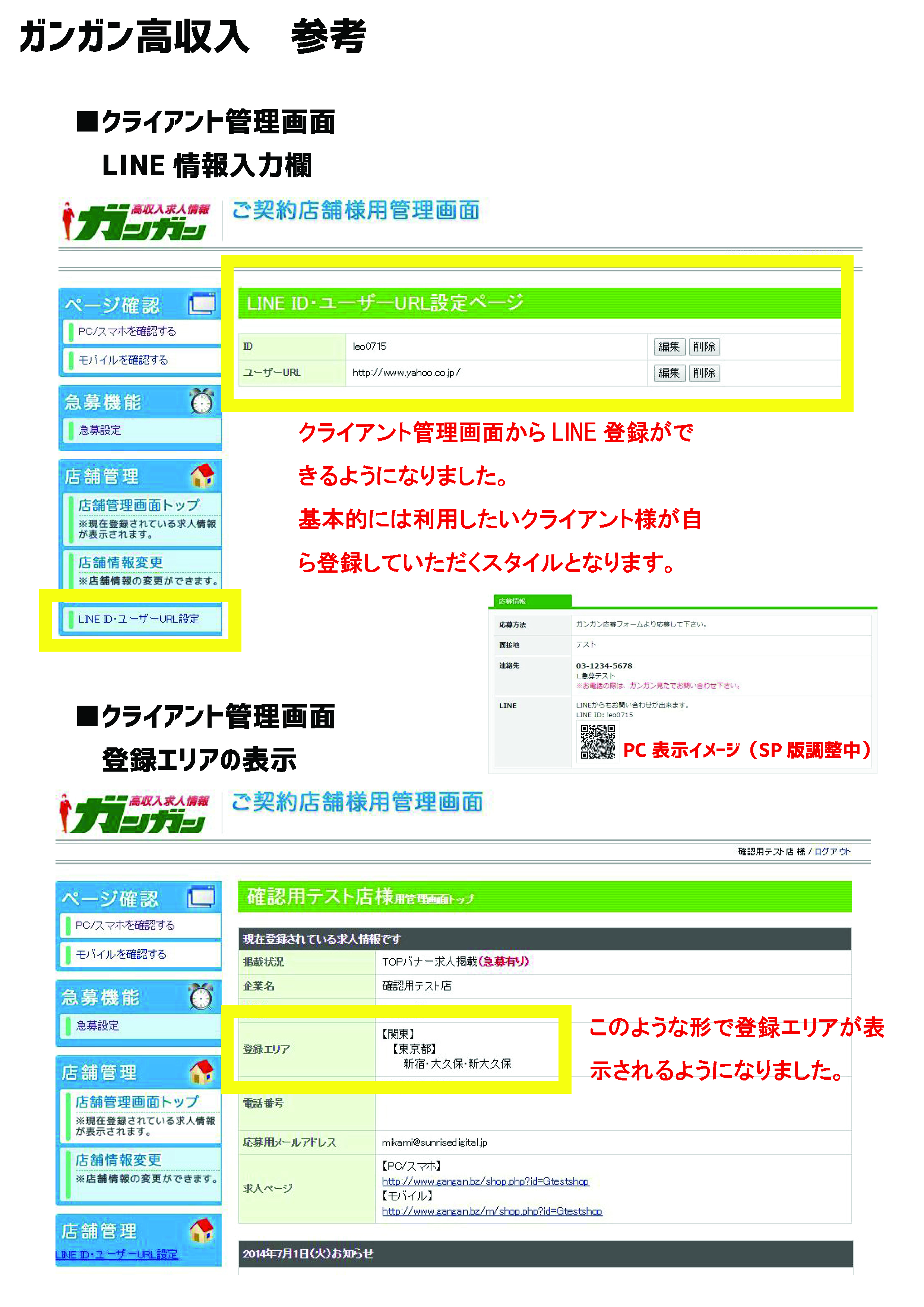 【クライアント管理画面に登録エリアの表示】