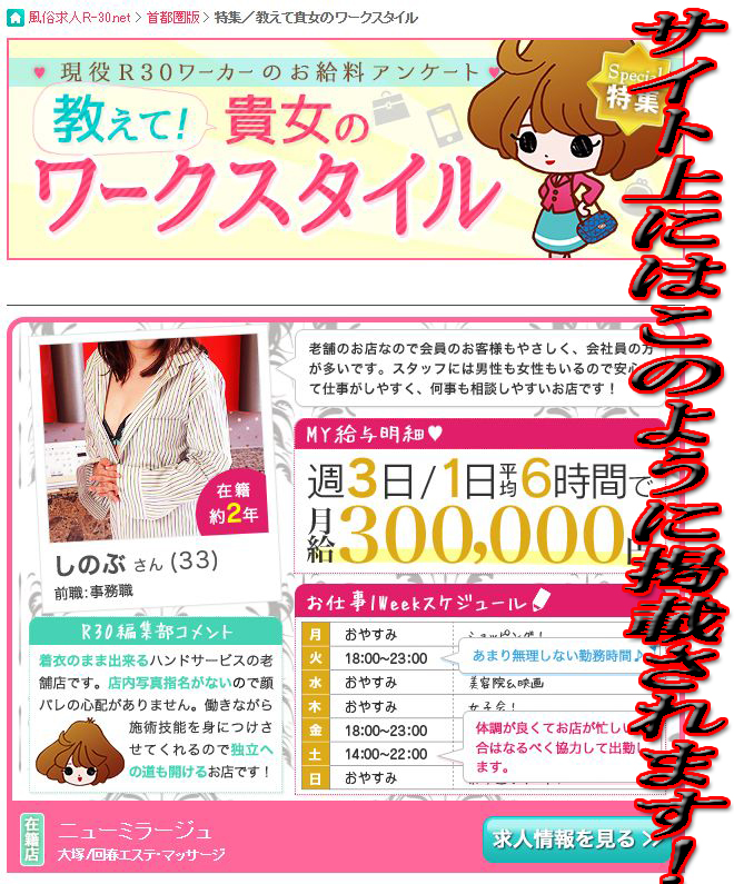 実際にお店で働いている女性の働くスタイルをご紹介するコンテンツ、