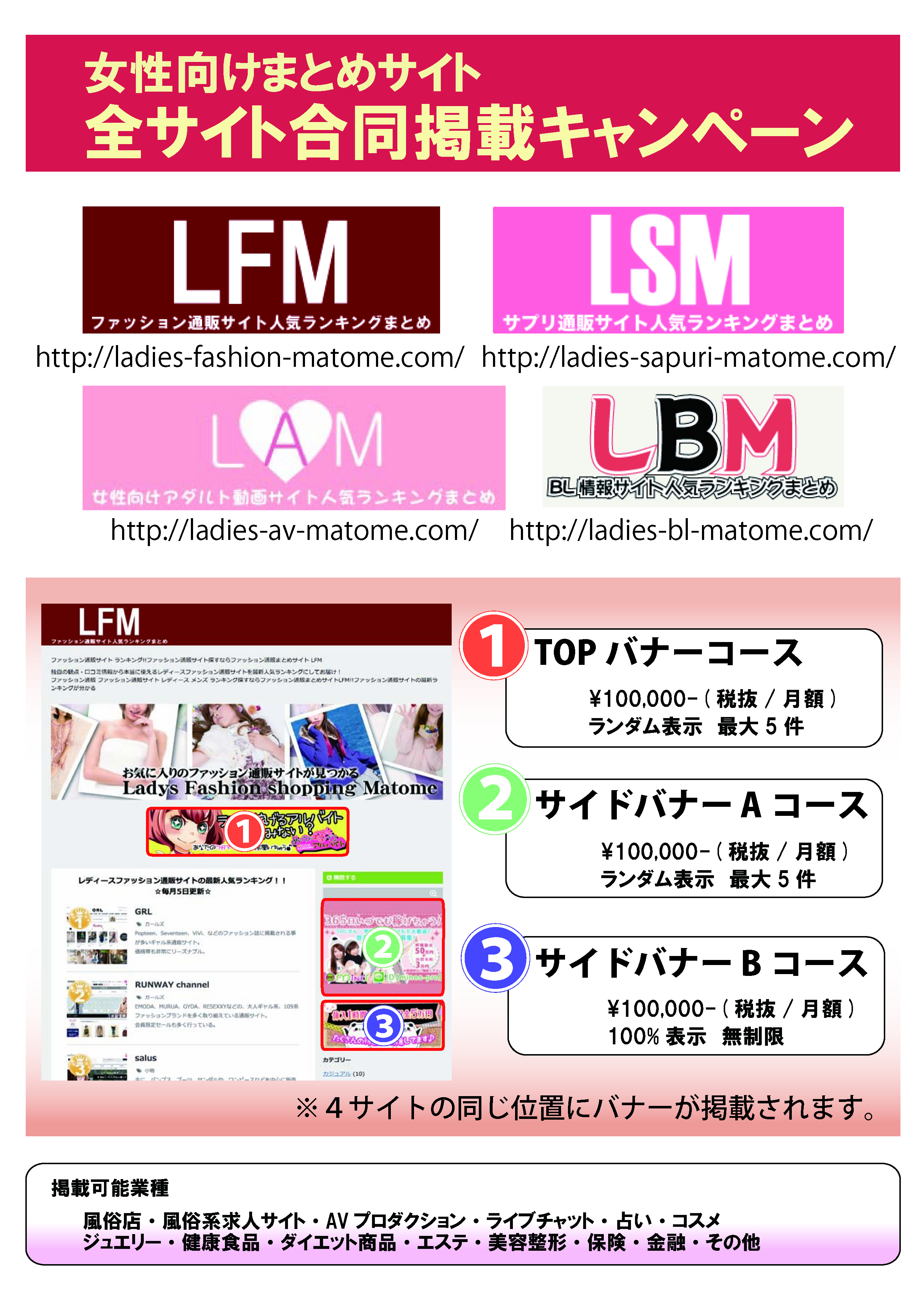 【LFM】【LSM】【LAM】【LBM】の4サイト掲載は今だけ!!掲載をご検討の方は、メールもしくはお電話にて!